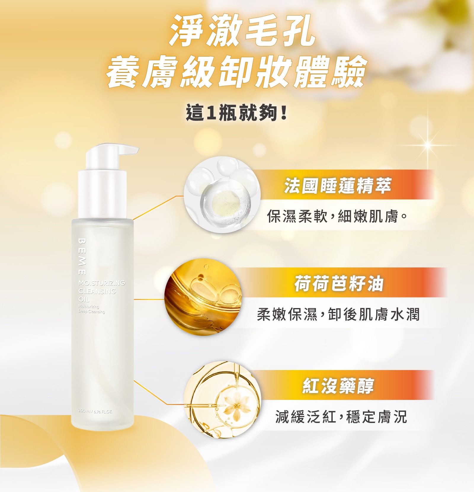 運用3D奈米技術,微分子滲入徹底清潔,富含生化鎖水因子、天然植物微分子油脂角鯊烷和荷荷芭油等多種成分,質地清爽,能深入肌膚底層將彩妝髒汙完全包覆在潔顏油中,徹底卸除殘妝;維持肌膚高含水量,洗後不緊繃不乾燥,深層保濕又能修護肌膚,卸妝、保濕一次完成,滿足妳對潔顏油的完美期待。